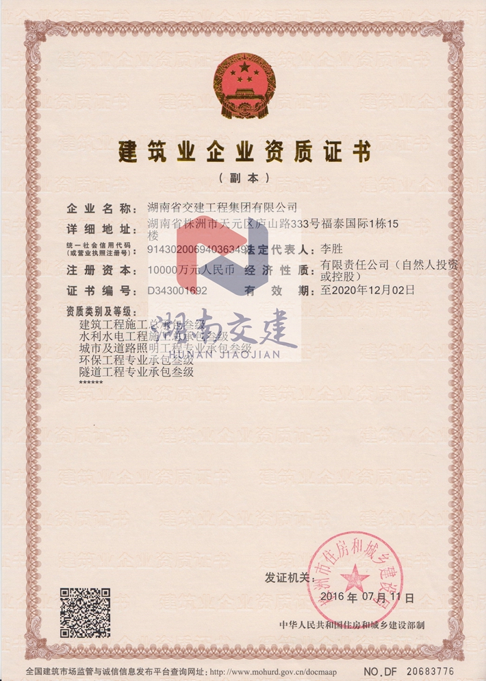 建筑業(yè)企業(yè)資質(zhì)證書貳級(jí)