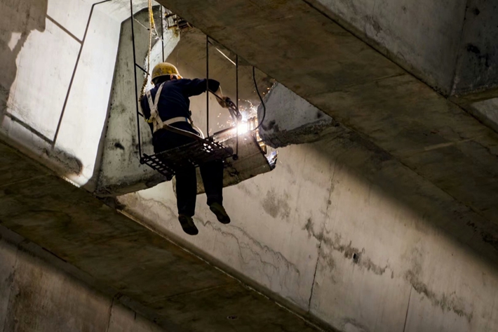 奔忙、勞碌,和時間來賽跑,在春天的季節(jié)里濕透了衣背;汗水順著臉頰流下,腦門上跳動的青筋,轉瞬即逝的一個動作、一個眼神都深深與路橋渾然天成。