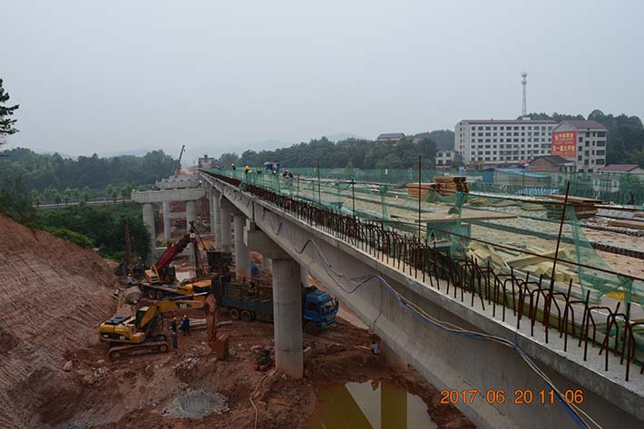 益婁高速公路第十一合同段起于湘鄉(xiāng)市壺口鎮(zhèn),穿過婁底市經(jīng)濟開發(fā)區(qū),止于湘鄉(xiāng)市毛田鎮(zhèn)。路線上跨益湛電汽化鐵路、婁湘公路、橫跨漣水河,全長8.2km,路基全長5.467km,橋梁全長2.733km,婁底東互通1處,合同總價2.88億元。主要工程量有:路基挖方143.97萬方,填方119.71萬方,通道涵洞29道,特大橋1690m/2座,大橋868m/4座,中橋175m/3座,砌筑工程5.6萬方。其中中陽特大橋(24*40m +35m +60m +35m +3*30m)和白鷺灣漣水河大橋(6*25m +3*40m +55m +90m +55m)為益婁高速公路兩大控制性工程。本工程于2016年5月19日正式動工,到目前為止已完經(jīng)成合同產(chǎn)值1.99億元,占合同總價的70%。
