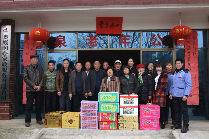 2015年3月2日,益婁十一標(biāo)及十四標(biāo)項(xiàng)目部工作人員在公司副總經(jīng)理郭建文的帶領(lǐng)下來到婁底石泉老年公寓給老人拜年。雖然我們和這些老人已同處在一個屋檐下幾個月,但真正走進(jìn)這棟老年人居住的公寓還是第一次。公寓的老人們在得知公司領(lǐng)導(dǎo)前去給他們拜年,在公寓護(hù)理人員的攙扶下,一路小跑來到門口迎接,他們每個人臉上都洋溢著幸福的笑容。