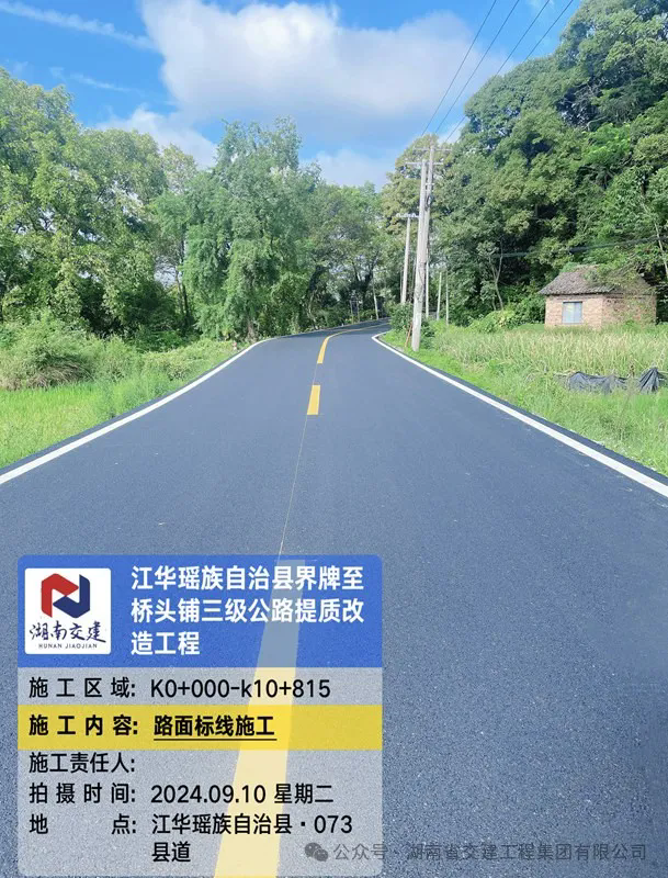 路線起點位于江華瑤族自治縣橋頭鋪,與G207相交,路線沿老路向西布設,途徑木園村、前進村、黃家田,終于界牌村,與X070相交,路線全長10.8公里,經過連續(xù)多日的緊張施工,項目已經取得階段性成果。目前已經完成總產值的98%,預計3天左右就會全線通車。