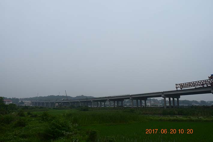 益婁高速公路第十一合同段起于湘鄉(xiāng)市壺口鎮(zhèn),穿過婁底市經(jīng)濟開發(fā)區(qū),止于湘鄉(xiāng)市毛田鎮(zhèn)。路線上跨益湛電汽化鐵路、婁湘公路、橫跨漣水河,全長8.2km,路基全長5.467km,橋梁全長2.733km,婁底東互通1處,合同總價2.88億元。主要工程量有:路基挖方143.97萬方,填方119.71萬方,通道涵洞29道,特大橋1690m/2座,大橋868m/4座,中橋175m/3座,砌筑工程5.6萬方。其中中陽特大橋(24*40m +35m +60m +35m +3*30m)和白鷺灣漣水河大橋(6*25m +3*40m +55m +90m +55m)為益婁高速公路兩大控制性工程。本工程于2016年5月19日正式動工,到目前為止已完經(jīng)成合同產(chǎn)值1.99億元,占合同總價的70%。